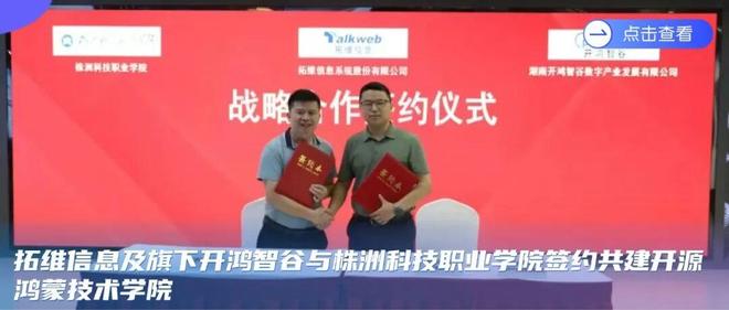 8月4日,拓维信息、开鸿智谷与株洲科技职业学院举行“校企共建开源鸿蒙技术学院”签约仪式。以此次战略合作为起点,校企各方将充分整合资源优势,持续深化产教融合,为国产操作系统生态繁荣与区域数字经济发展加快培育创新人才。