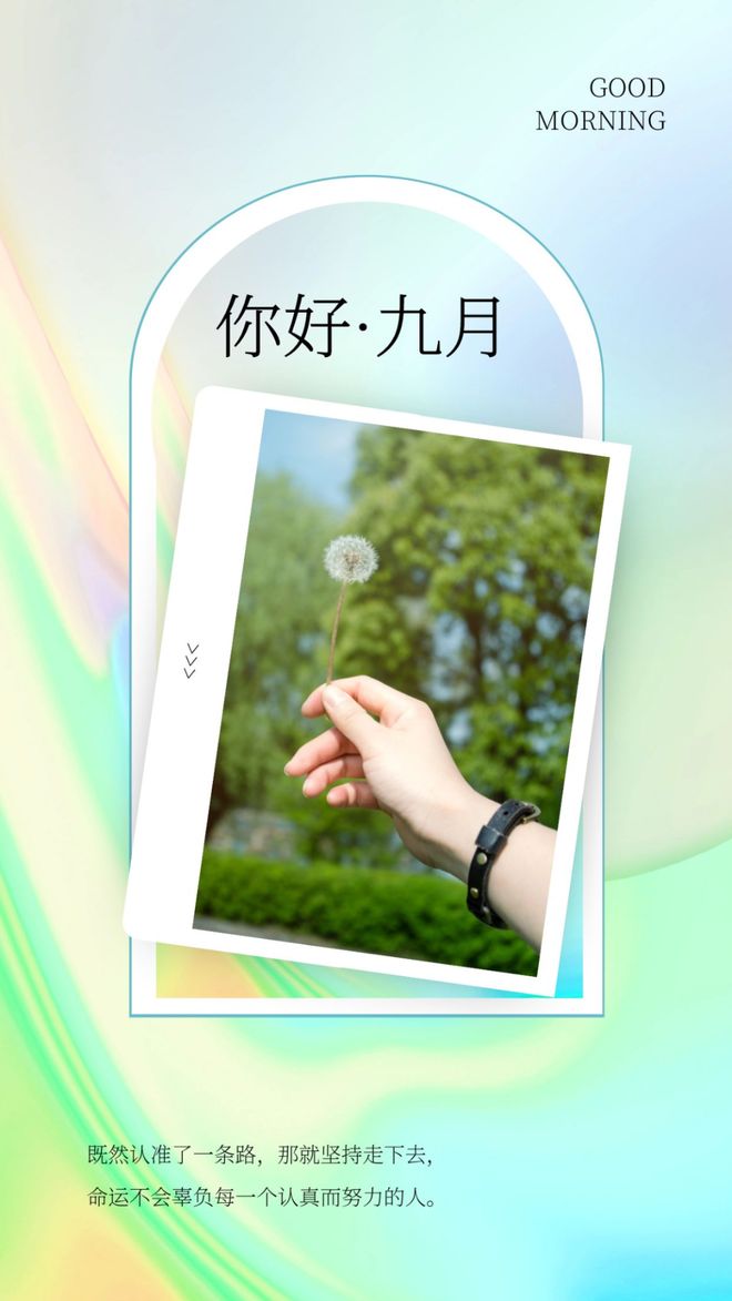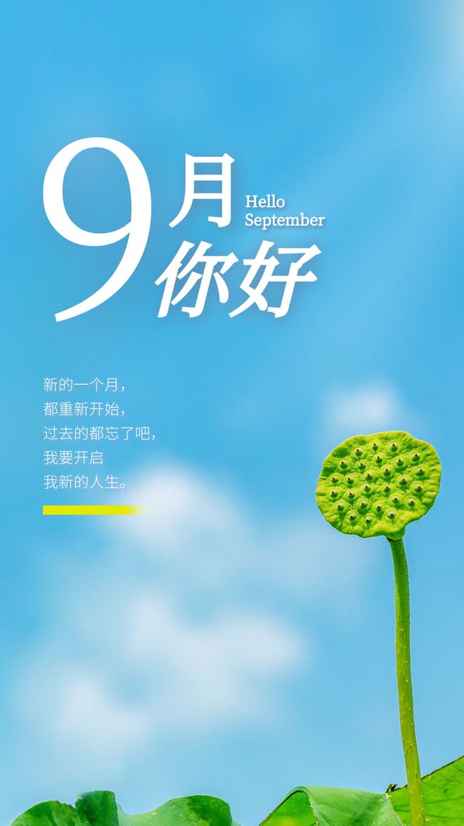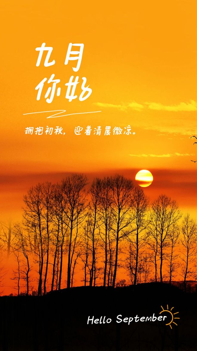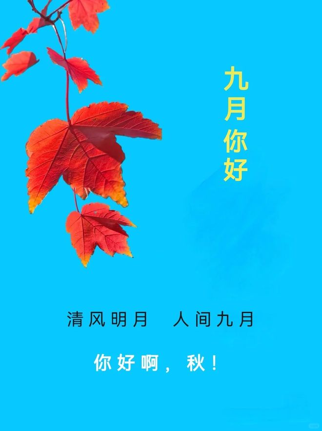 八月再见,九月你好!愿打拼的你,顺风顺水,愿辛苦的你,收获成绩,愿孤独的你,找到归宿,愿坚持的你,不被辜负!愿离开的八月,带走所有的烦恼;愿崭新的九月,遇见的全是美好!