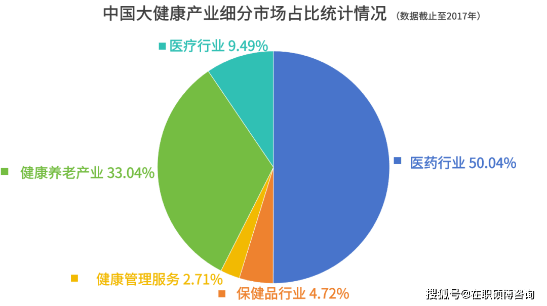 现阶段,我国大健康产业主要以医药产业和健康养老产业为主,市场占比分别达到50.05%和33.04%。中国将成为全球健康产业的最大市场之一。